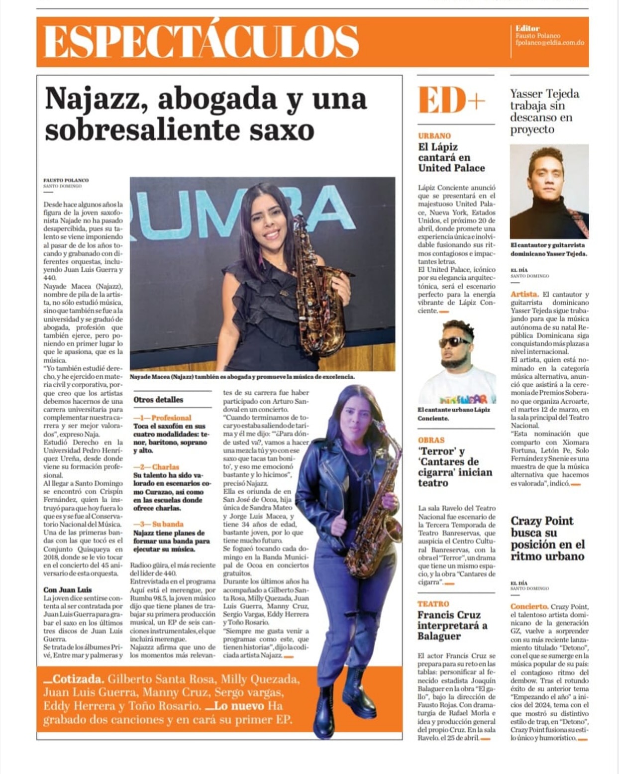 Najazz, abogada sobresaliente saxofonista Dominicana